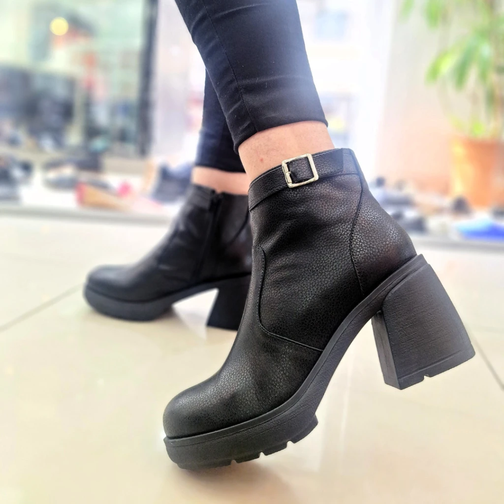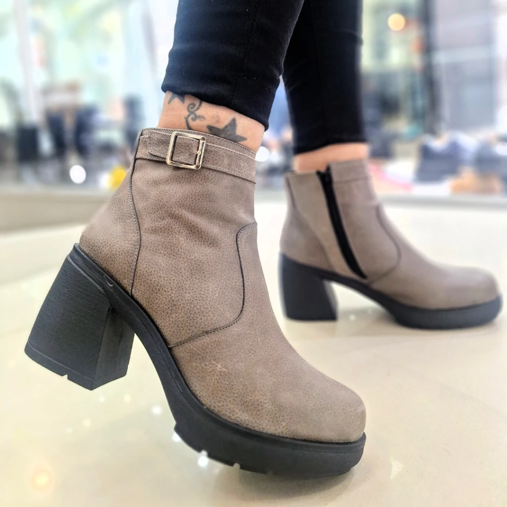 Un modelo que se sale de lo clásico sin perder versatilidad. La Botineta Inés es ideal para quienes buscan un poco más de presencia en su look, gracias a su taco y diseño con carácter.